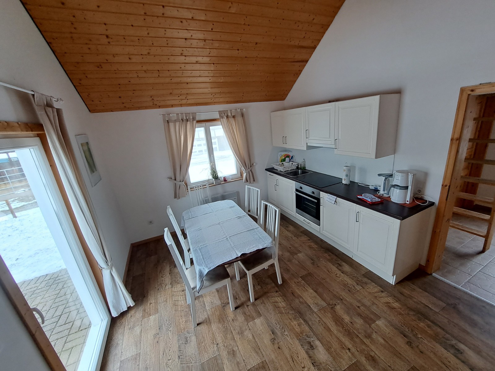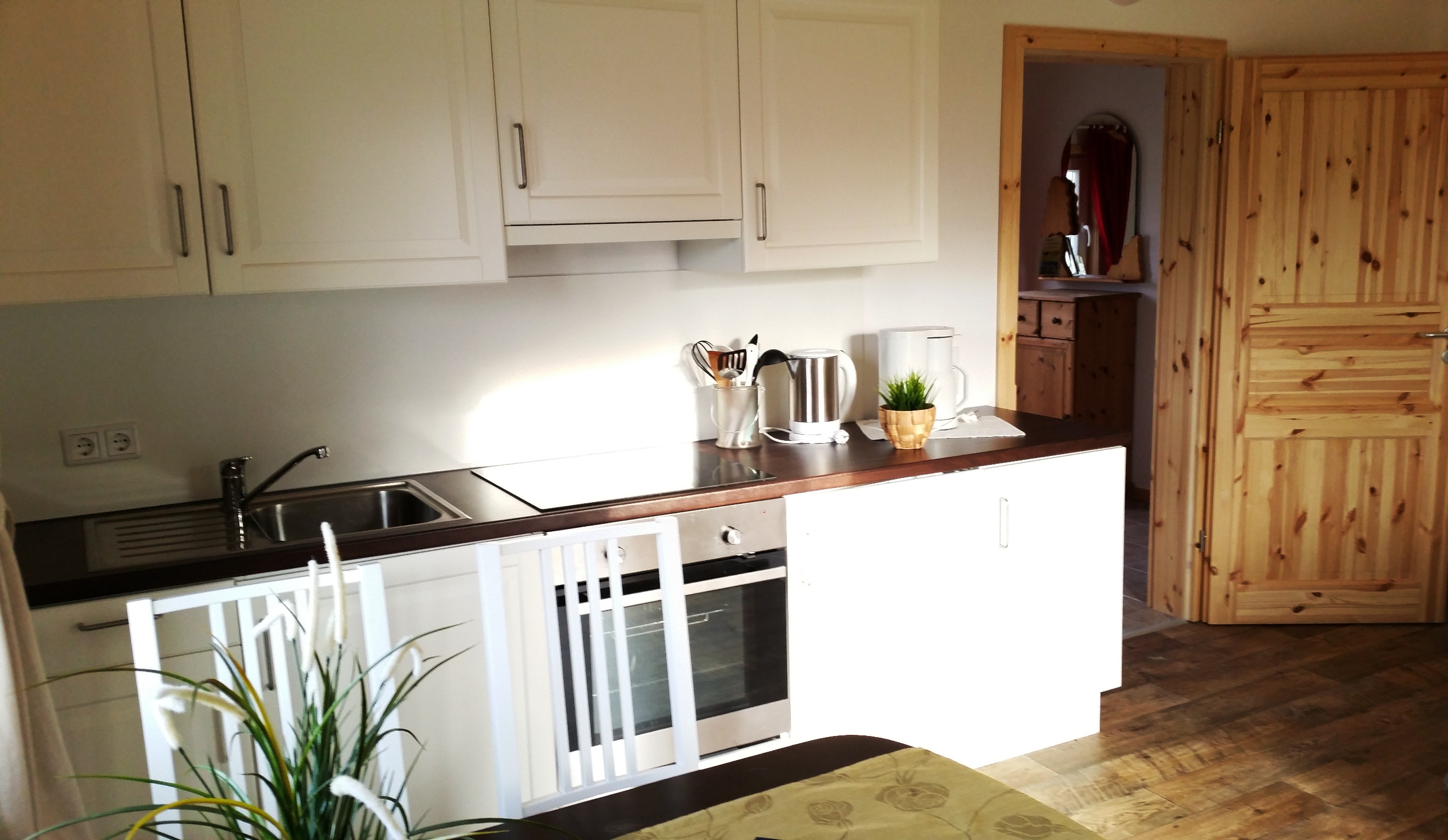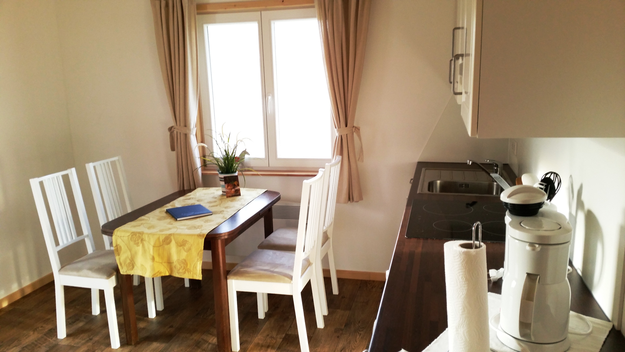 Zur Ausstattung zählen: Bettwäsche für das Doppelbett, 1 Satz Handtücher, Küchengeschirr für 6 Personen, Kaffeemaschine, Wasserkocher, Toaster und Fön