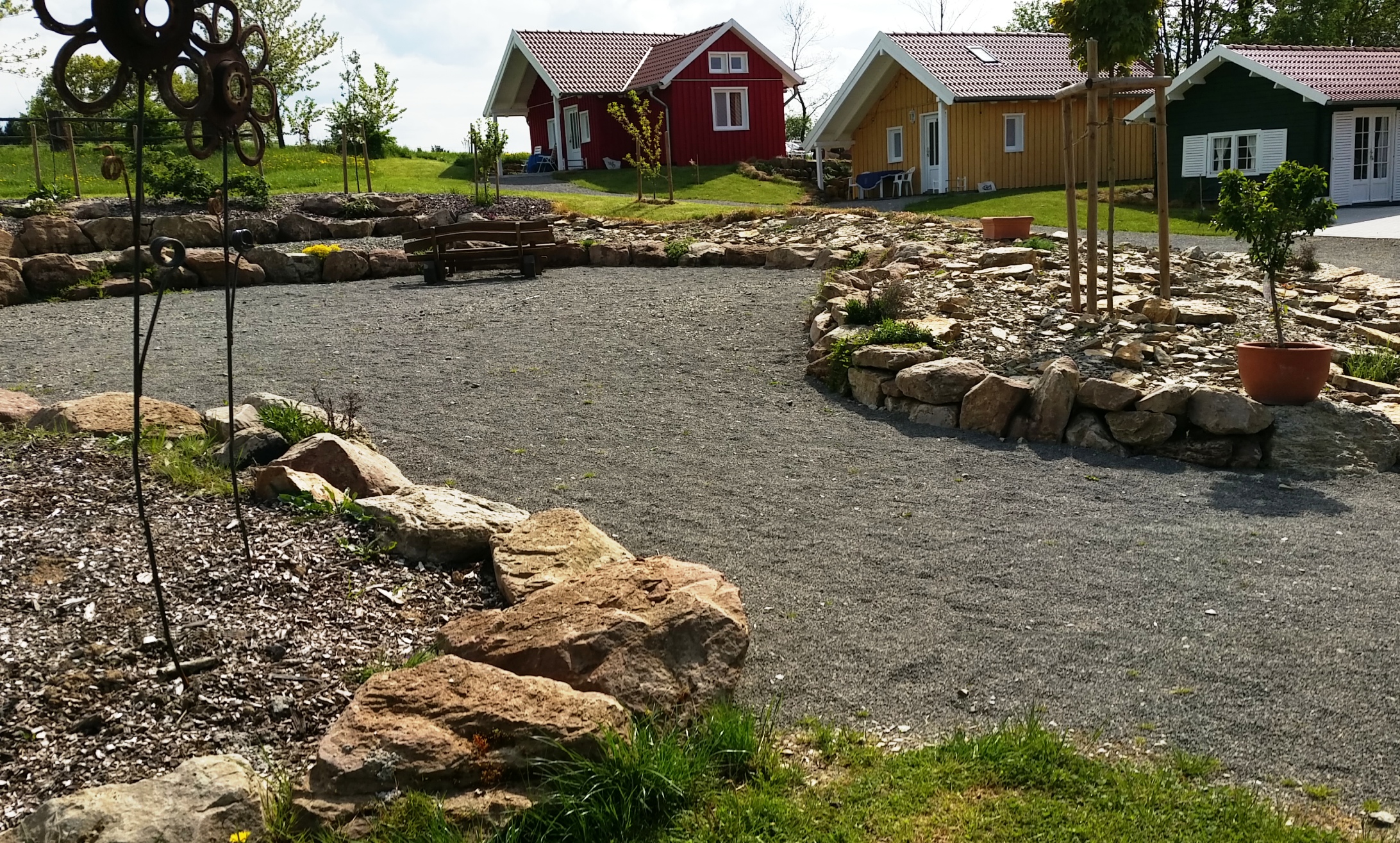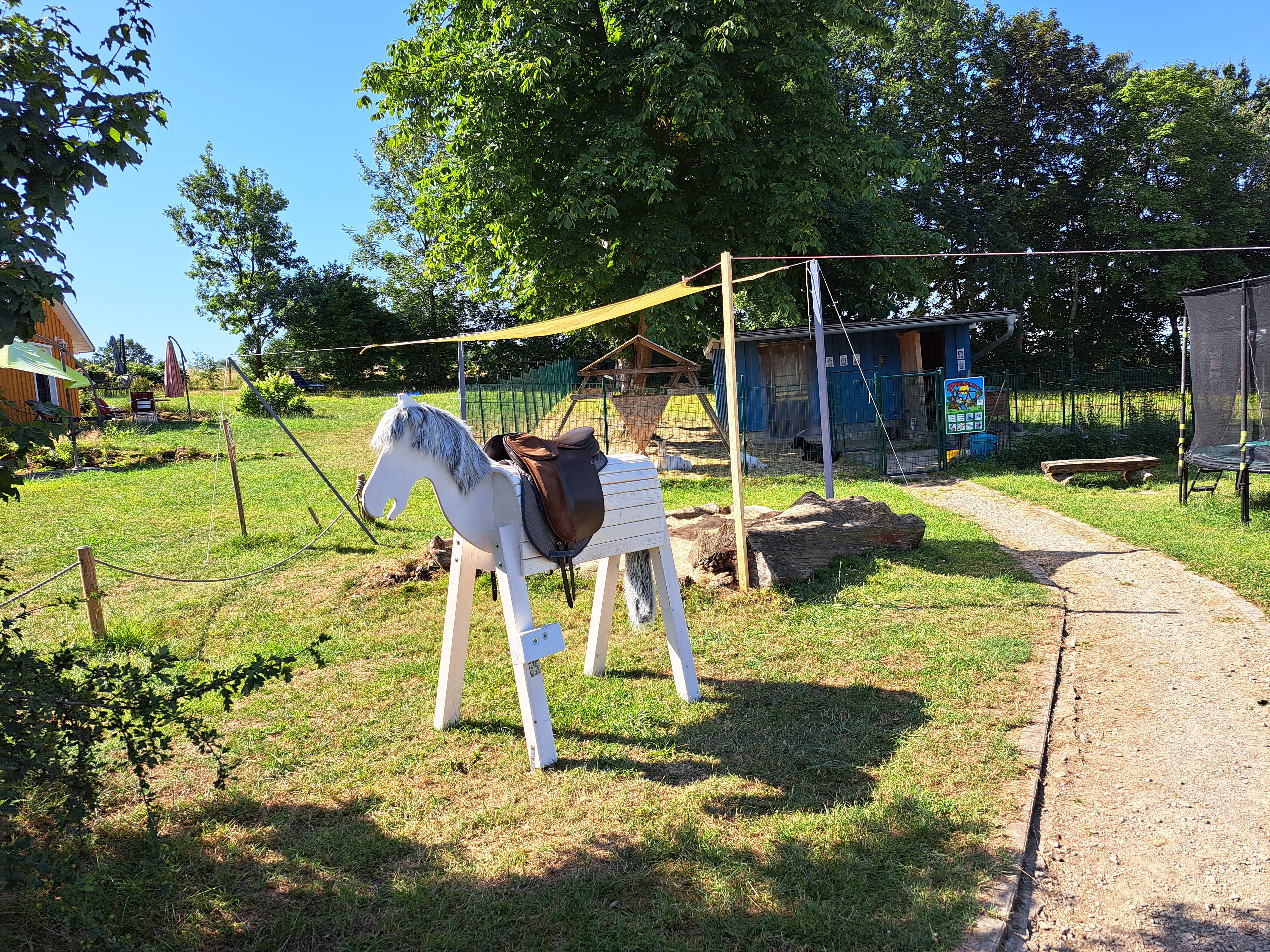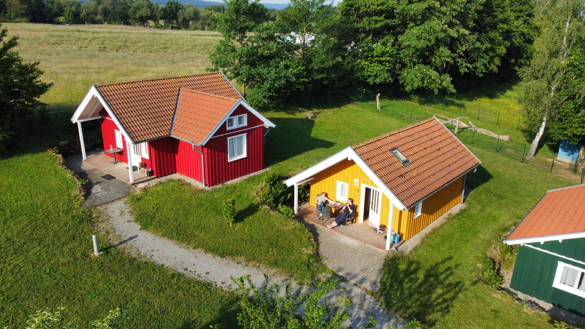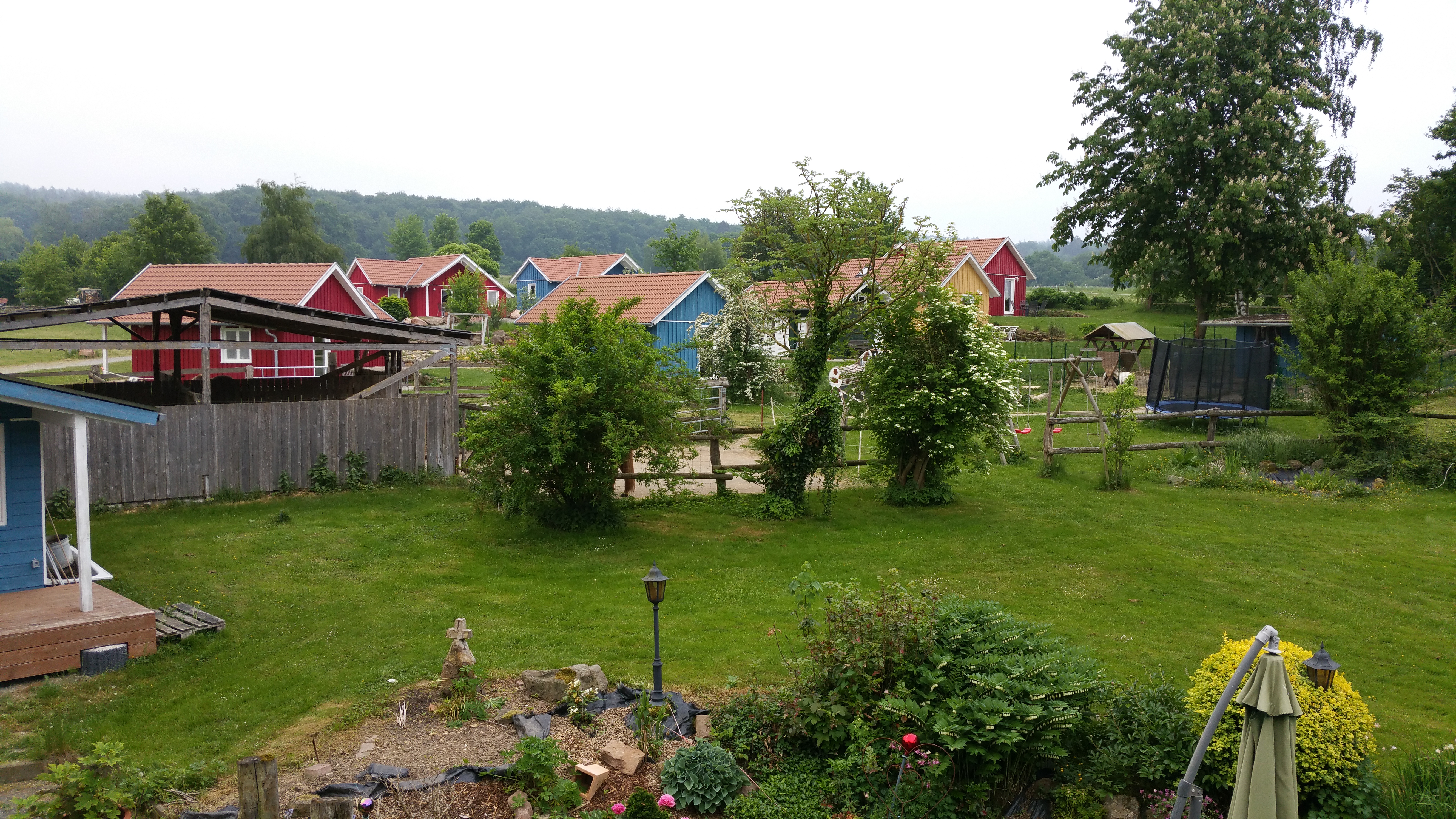 Unsere Ferienhäuser sind im "nordischen Stil" in Holzrahmenbauweise hergestellt. Alle Häuser verfügen ganz bewußt, weder über W-LAN noch Fernseher. Sie befinden sich direkt an Pferdekoppeln, Reitplatz und an dem Wanderweg "GrimmSteig". Auf unserem "kleinen Dorfplatz" befindet sich eine Hollywood-Schaukel und ein Grill mit einer rustikalen Eichenholz-Sitzgarnitur um den Tag gemütlich ausklingen zu lassen.